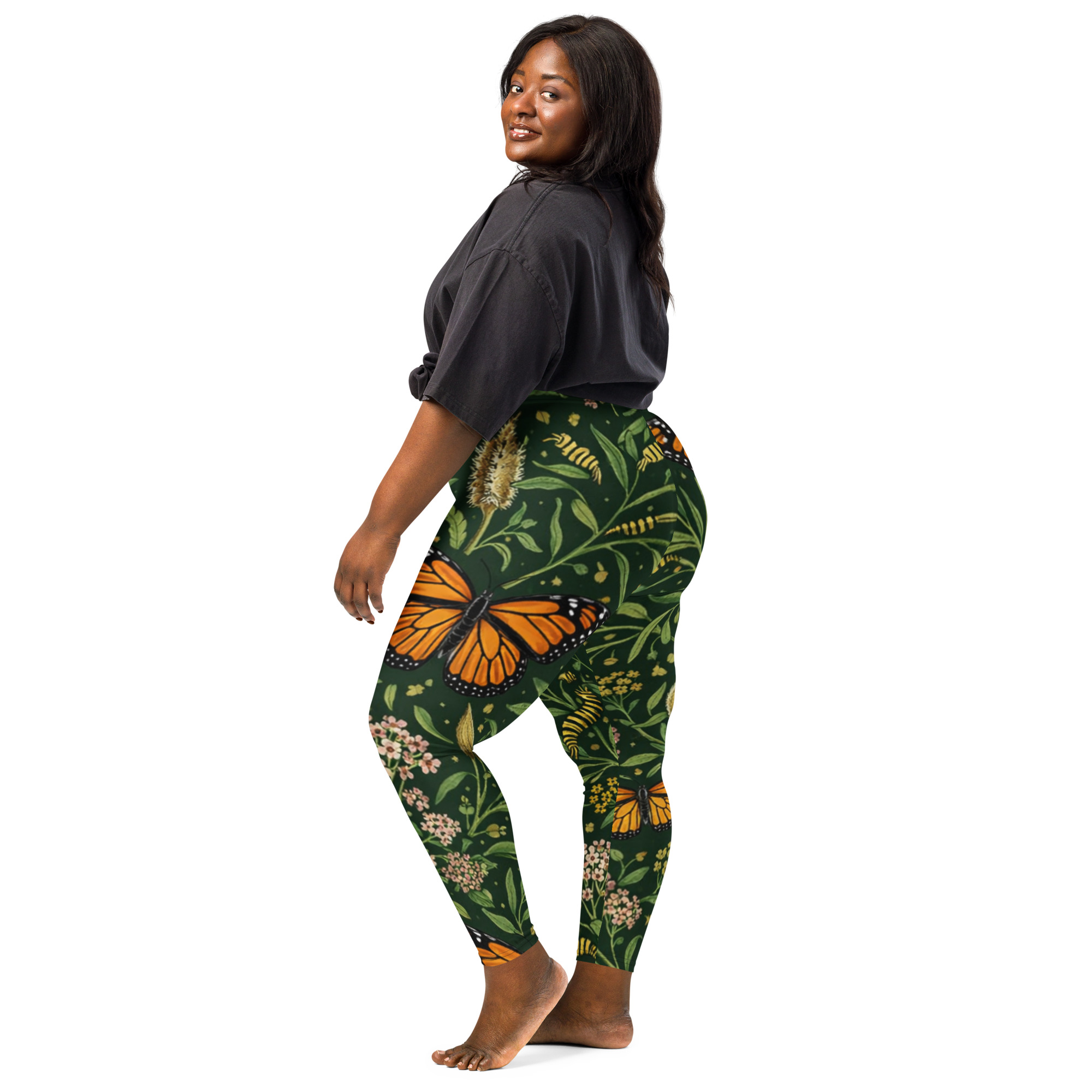 Step into a living pollinator garden. These Monarch Habitat leggings feature a vibrant pattern inspired by monarch butterflies, milkweed flowers, and the native plants that support their life cycle. Designed for comfort and movement, they’re perfect for gardening, yoga, walking the trails, or simply sharing your love of pollinators wherever you go.